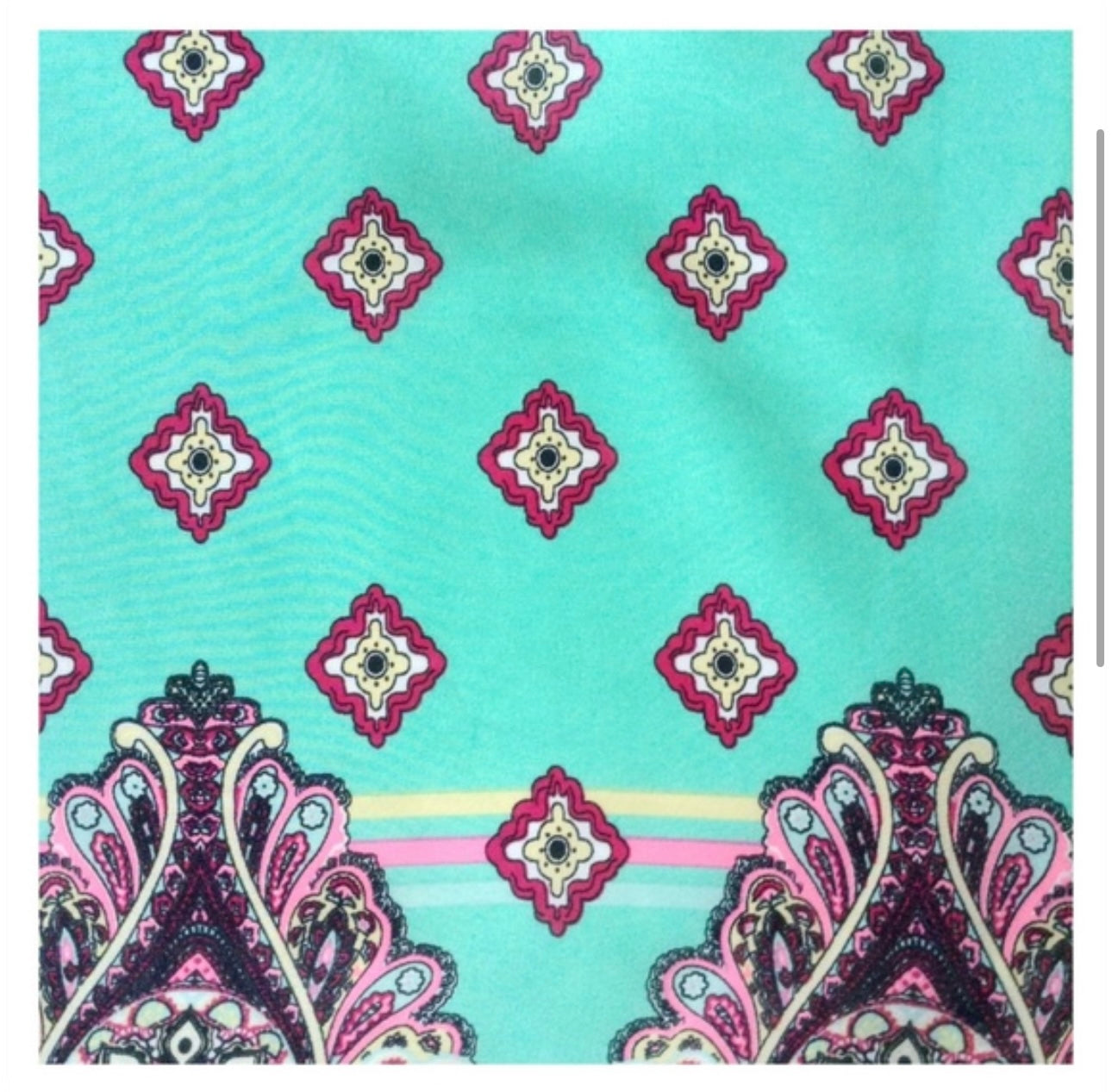 This short sleeve woven dual layered (one chiffon, second solid) dress features geometric print all over, rounded neckline and "shift" style fit. Fully lined